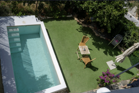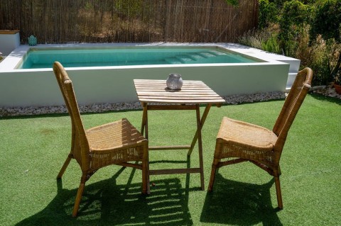 La vivienda dispone de cuatro amplias habitaciones, dos baños, salón, cocina totalmente equipada, aire acondicionado en todas las estancias, terraza con barbacoa y piscina de agua salina, lo que la convierte en un espacio perfecto para escapadas en familia o con amigos