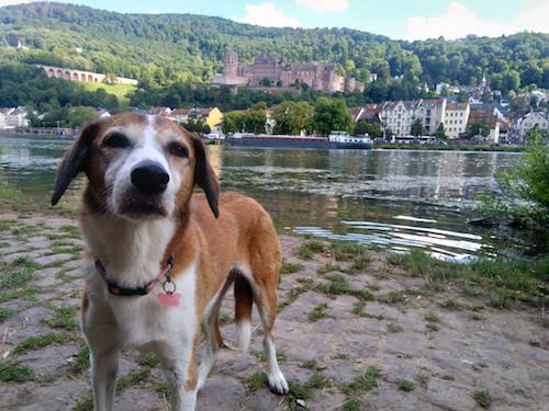 On either side of the river, and just below the bridge, you can access a walkway that runs along the Neckar River. This is a good place to stop and let the dogs take a dip and take some postcard-worthy photos of them swimming.